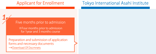 Documents to be submitted are slightly different depending on the country of the applicants. Please contact our school.